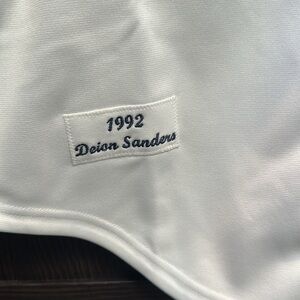 Commemorate one of the Atlanta Braves' most legendary players with this Deion Sanders Cooperstown Collection 1992 Authentic Jersey from Mitchell & Ness. The tackle twill graphics on this jersey add a layer of authenticity, mimicking the feel of jerseys worn. Its rib-knit stripe design at the sleeves and collar, along with the rounded droptail hem, provide a comfortable and stylish fit for any fan of Deion Sanders.