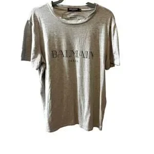 Balmain Logo Print T-Shirt Gray and Black Size XXL