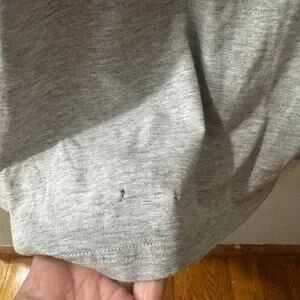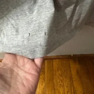 two very small holes near hemline, likely from belt usage, doesn't affect wear