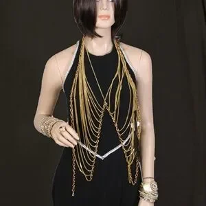 NWOT Vintage Long Heavy Elegant Gold Tone Layered Necklace Body Chain Jewelry Bohemian Boho Chic, Heavyweight. Not marked. Perfect look for any party, wedding, date night, dancing, dinner, beach. Very hippie style for any festival! This stunning gold layered necklace adds a touch of elegance to any outfit. Great gift! Will ship right away. Check out my other designer items.
