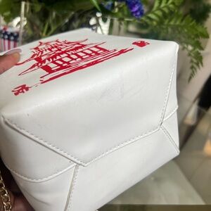 Stylish women bag featuring a striking red pagoda design on a white background. Perfect for adding a unique touch to any outfit.
