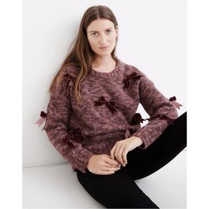 Madewell Sweater Burgundy Purple Velvet Bow Small S Academia Preppy