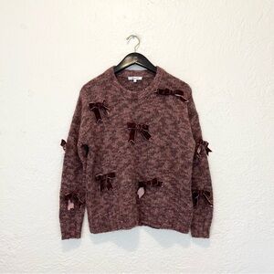 Burgundy purple marled chunky knit. Velvet bows throughout. Long sleeve. Classic/preppy/academia/whimsigoth style. NWOT. Never worn. Excellent condition.