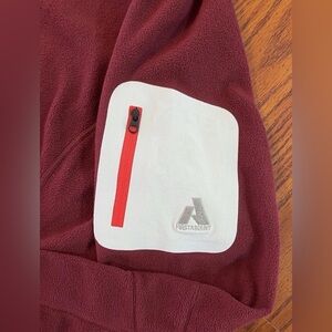 Stay cozy and stylish with this Eddie Bauer First Agent Sweatshirt. Made with 100% polyester fleece material, this maroon sweatshirt features a mock neck and full zip closure. The long sleeves and breathable features make it perfect for walking, running, and jogging in all seasons. Excellent condition.