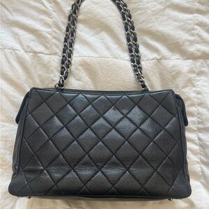 CHANEL VINTAGE Black caviar leather Quilted Shoulder Bag with Silver Accents