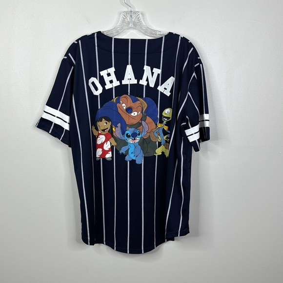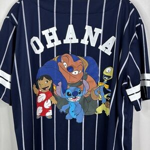 Disney Navy Pinstriped Lilo & Stitch Ohana Graphic Baseball Jersey