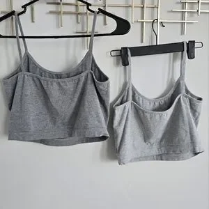 Comfortable gray cropped tank tops. One dark gray and one light gray. Ideal for casual wear.