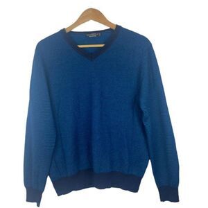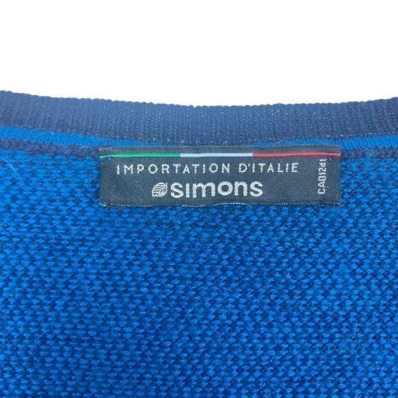Simons Men's Blue Knit Italian Merino Wool Blend V Neck Long Sleeve Sweater US S