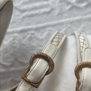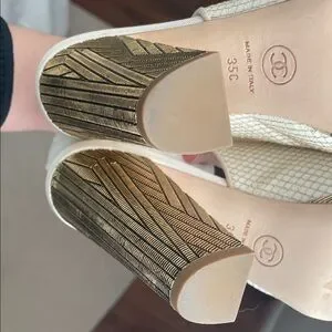 CHANEL Camellia Heels Sandals Slingback size 35 / 5 B gold white flower
