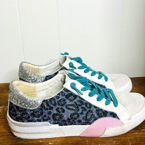 Dolce Vita Zina Sneaker Women's 6.5 Leopard Splash Fabric Silver Shimmer Glitter
