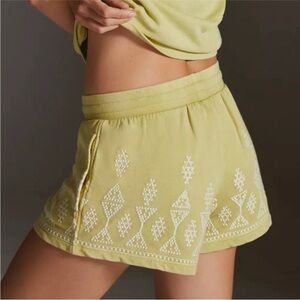 Anthropologie Daily Practice Lime Green Embroidered Sweat Shorts Lounge