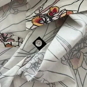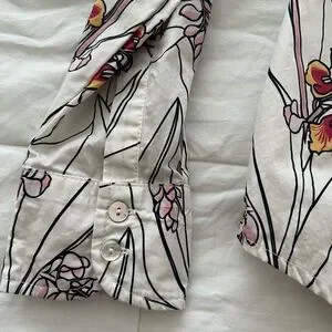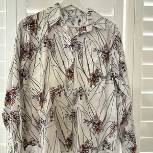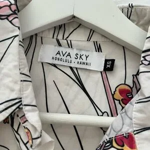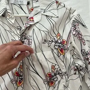 Stylish Ava Sky blouse with floral print. Features white base with rose ginger print. Perfect for business or business casual wear!