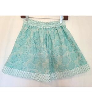 Buru Aqua Brocade Cropped Mod Top and Skirt - size XS