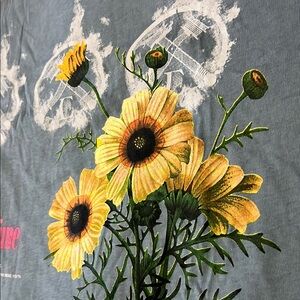 This short sleeve tee features a captivating floral graphic design on a gray and yellow base, offering a modern and stylish look. Ideal for casual wear, it combines comfort with a touch of artistic flair. The unique design makes it a standout piece in any wardrobe.