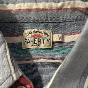 Faherty have this perfect Casual button-down with a stylish striped pattern! It’s a nice fit and has Soft fabric for all-day comfort! The colors highlight eye colors and are Ideal for relaxed outings! And I forgot to mention it’s in perfect condition!!