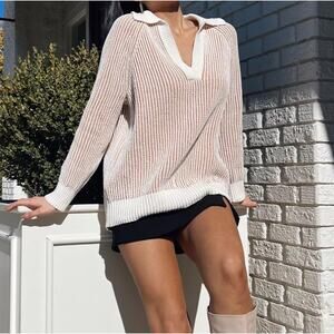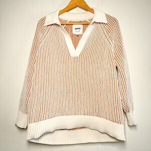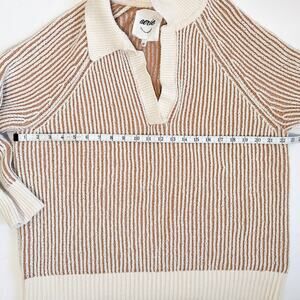Aerie Striped Knit Collared Sweater Oversized Pullover Tan Long Sleeve Small