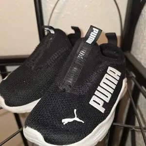 Comfortable and stylish, these black slip-on shoes from Puma are perfect for active kids. Easy to wear and durable for everyday adventures. Size 4 Toddler.