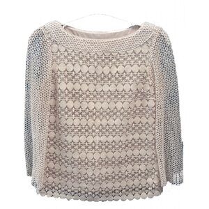 Elegant Tory Burch top — intricate ivory guipure lace openwork top with delicate scalloped hem and sheer sleeves. Lined and interlined. Perfect for brunch, Thanksgiving and parties, or pairing with jeans for an elevated everyday look. Neutral ivory color which works with almost any kind of pants or skirt. Classic, old-money, elegant look.