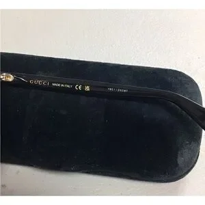 Elegant Gucci sunglasses with black frame and gold accents. Ideal for stylish wear.