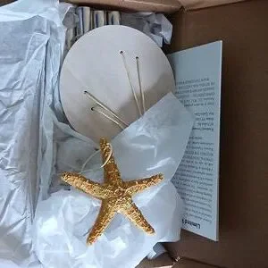 Discover the soothing sounds of . This brown box contains a beautifully crafted wind chime, perfect for adding a touch of tranquility to your home.