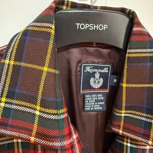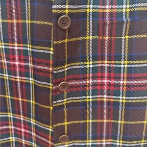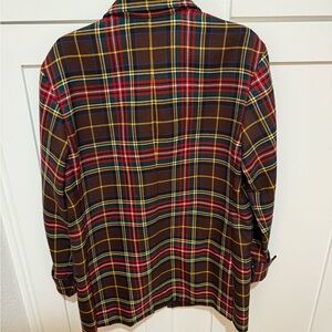 Vibrant plaid jacket with a mix of colors. Crafted from 100% wool. Designed for style and comfort. Perfect for the holidays