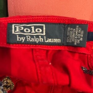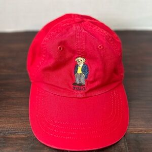 Vibrant Ralph Lauren caps with iconic embroidered logo. Includes shades of red, green, blue, salmon and olive green. (4) Polo baseball caps including (1) w Polo Bear design *all adult one-size-only* and (2) Polo bucket hats *both adult size S/M*