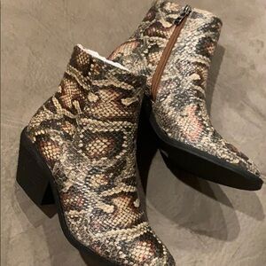 Ah, I so wish these were my size! They are so stinking cute and go with everything! New in box Catherine Catherine Malandrino multi colored snake Rocko booties. They are true to size but kind of narrow so if you have wide feet, these may not be the best for you