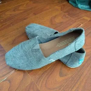 Comfortable TOMS slip-ons in heathered gray. Ideal for everyday wear.
