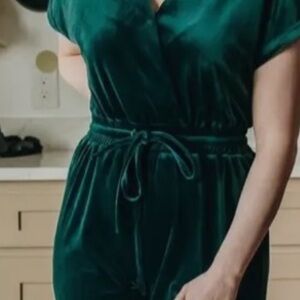 Step out in style with this elegant green velvet jumpsuit. Dress it up or down…. 3XL, Ties in the front.. flattering fit and luxurious feel. NWT … Tall girl friendly 60 in long. PTP 24