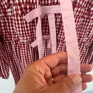 Elegant Red Gingham Dress with Bow Detail