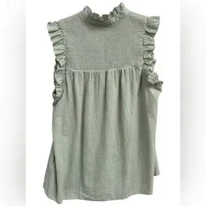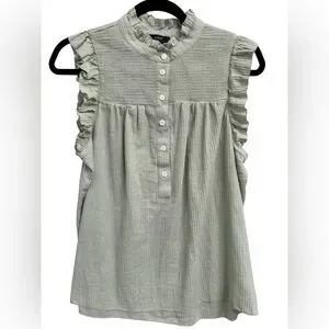 J.Crew Garden Soft Gauze Cotton Light Safe Green Button Sleeveless Top Sz Small