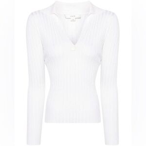 Vince ribbed knit polo top wool silk blend theory Eileen fisher cos everlane