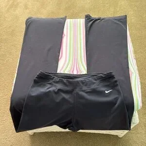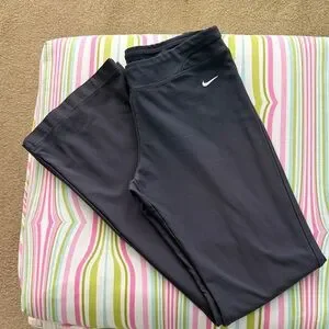 Gently worn Nike gray athletic pants wide leg, check picture, some wear on back of legs, check picture, price reflects wear, size Small 2-4 poly/ spandex blend