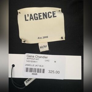 This is a L’Agence brand black colored denim Janelle Jacket in a women’s size Medium. Jacket is brand new with its original tags attached.