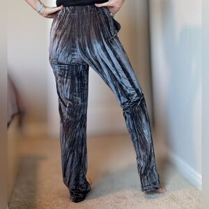 Chic velvet pants with a stylish black and gray pattern. Perfect for adding elegance to any outfit.