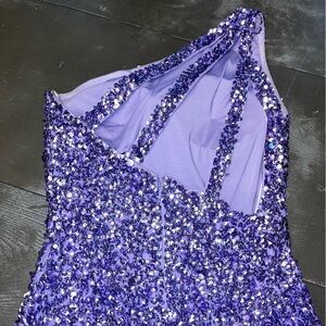 Sherri Hill 54330 Purple Sequin Asymmetrical Prom Hoco Formal Dress 2