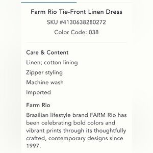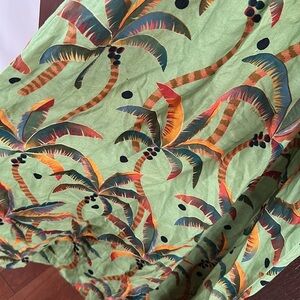 Farm Rio Anthropologie Tie-Front Linen Maxi Dress Green Motif Tropical Medium. Size 8-10