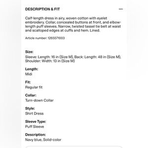 H&M Navy Blue Midi Eyelet Dress. Impeccable quality.