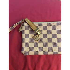 Women's Unbranded White Light Blue Checkered Clutch Wristlet