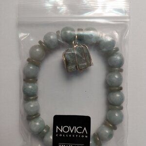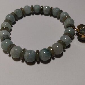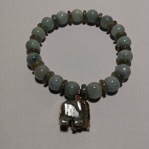 Jade Beaded Bracelet With Carved Elephant Charm Includes Gift Bag ~ New