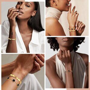 Womens Gold Bracelets Set 18K Gold Plated Floral Bangles Gift for Her