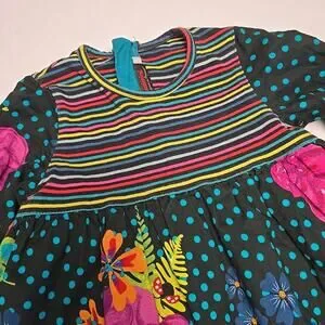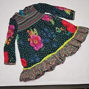 Catimini Toddler Girl Dress 4/104 Boho Style Floral Cotton Zip Back