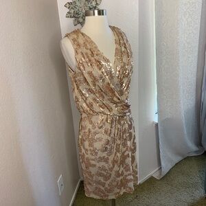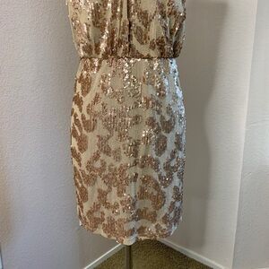 David Meister Gold Sequins Dress Size 6 In Like Never Worn Condition, Fully Lined, Elegant, Festive, Feminine, Appropriate for Formal Events, Parties, Weddings Wedding Guest