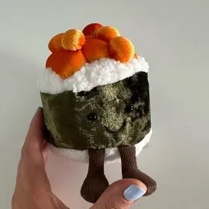 Delight your child with this adorable plush sushi toy. Featuring vibrant orange and green colors, it's perfect for imaginative play. Soft and cuddly, this toy will quickly become a favorite. It is absolutely hard to find and this one is new with tags. Tags slightly off color. Jellycat Silly Sushi Maki