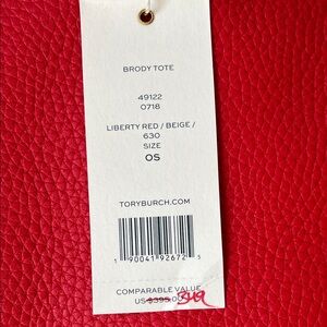 NWT Tory Burch Brody Tote Liberty Red/Beige Pebbled Leather
