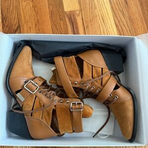 Chloe Rylee Cutout lace up suede leather ankle boots in size 9.5. Excellent pre-owned condition. Chestnut natural brown color.