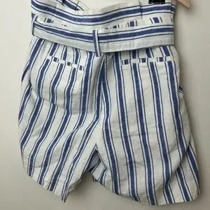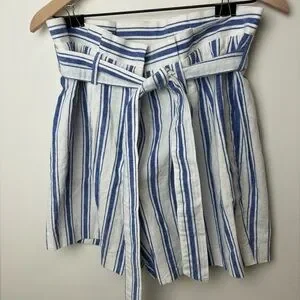 Boden Linen Blend Striped Tie Waist Paperbag Shorts Blue White Size 10 Medium