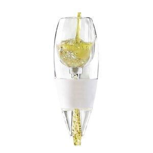 Vinturi White Wine Aerator. Vinturi's new white wine aerator is specially designed for white wine. As wine breathes, it releases its intended aromas and flavors. Unlike time-consuming decanters, Vinturi's aerator makes the decanting process fast, easy, and convenient. Simply hold the aerator over a glass and, as you pour the wine through, the proper amount of air mixes into the wine. The result is a better bouquet, richer flavor, and smoother finish. Vinturi's aerator is dishwasher-safe and comes with a no-drip stand and travel pouch.