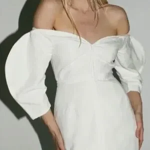 Mara Hoffman Leonara Off the Shoulder White Linen Midi Dress Size 10 is brand new and has never been worn! Sold out everywhere!