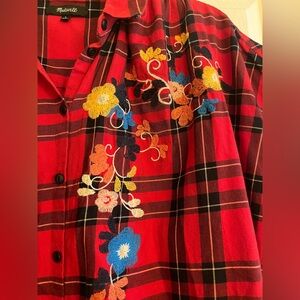 Madewell Embroidered Central Shirt on Red Dahl Plaid